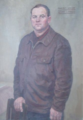 Бушуев В.Я. Портрет бригадира монтажников СМУ-1 Ники В.Г. 1987г. х.м. 102Х74 (603-05)
