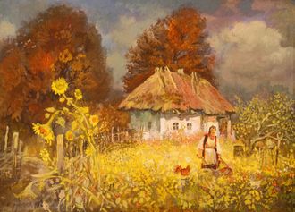 Мицник А.П. Украинская хата. Девчонка 1992 г. Холст. масло 56Х79 (608)