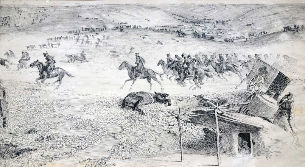 Котов Н.Г. Оборона Царицына. Фрагмент панорамы. 1950 г. Бумага, тушь, 37Х63 (928)