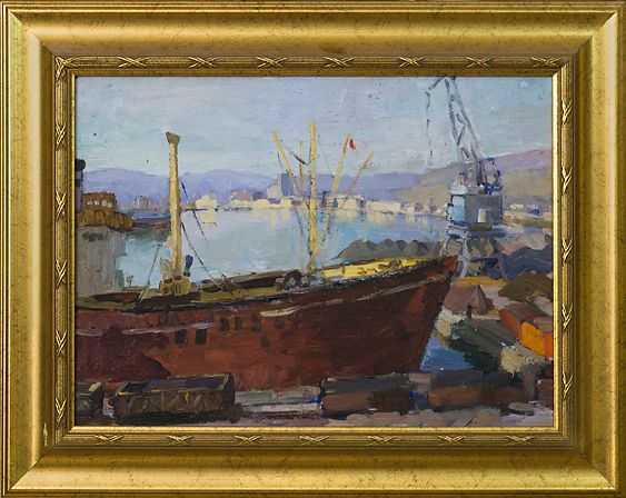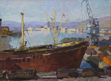 Сосновская А.Е. "Порт" картон, масло 33Х45 1950-е (14)