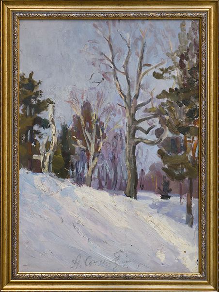 Сосновская А.Е. "Зимний пейзаж" картон, масло 46Х33 1960-е (21)
