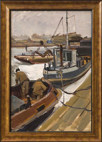 Кошелев В.П. "Астраханские ремонтники" картон, масло 48Х33 1960-е (23)