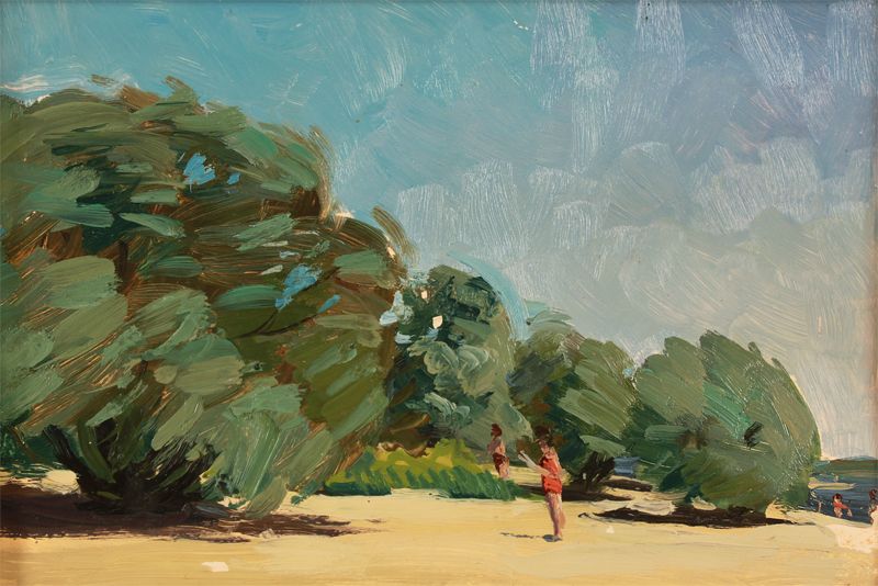Кошелев В.П. "На Волге" картон, масло 20,5Х30 1960-е (200)