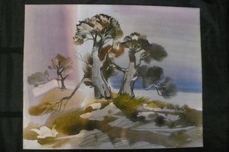 Кошелев В.П. "Сосны на дюнах. Чудское озеро" бумага, акварель 49Х61 1990г (207)
