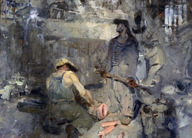 Метелев Г.С. Череповец. В цехе 1960 г. Холст, масло 52Х72 (931)