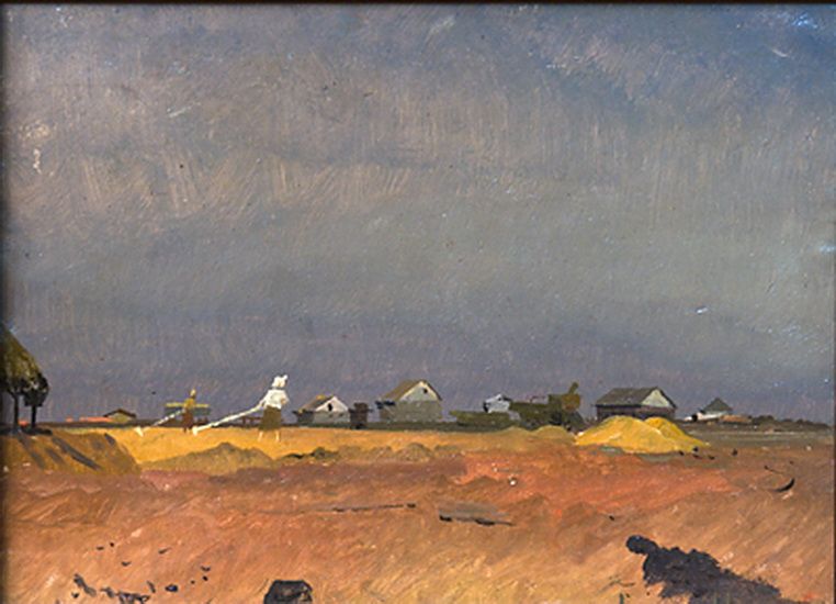 Котов Н.Г. Уборка урожая. картон, масло. 30Х40 1930-е