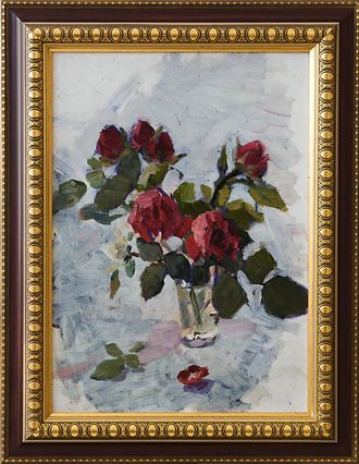 Сосновская А.Е. Розы. картон, масло 45Х32 1960-е (44)
