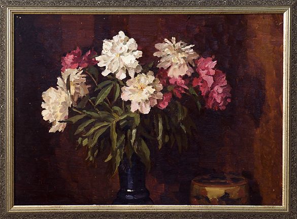 Мельников Д.И. Пионы. картон, масло 50Х78 1962г (26)