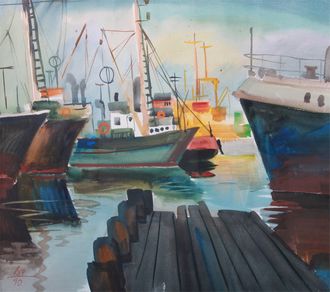 Кошелев В.П. В порту. бумага, акварель 47Х54 1990г (226)