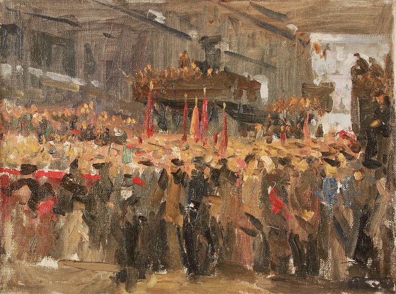 Бурак А.Ф. Митинг на заводе. холст, масло 31Х42 1950-е (162)