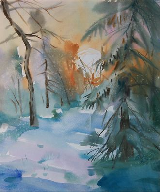 Кошелев В.П. Вечернее солнце. бумага, акварель 50Х42 1999 (236)