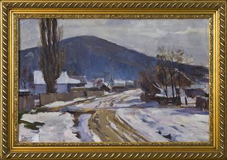Шмелев Д.И. Первый снег. картон, масло. 45Х70 1971г (31)