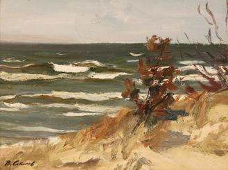 Соколов В. П. Взволновалось сине море. картон, масло 25,5Х34,5 1950-е (185)