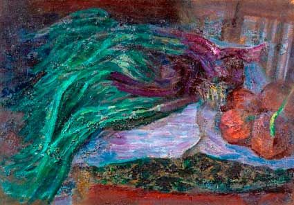 Геденидзе Н.Н. Зелено-фиолетовый лук 1977 г. Оргалит, масло, 48Х69 (937)