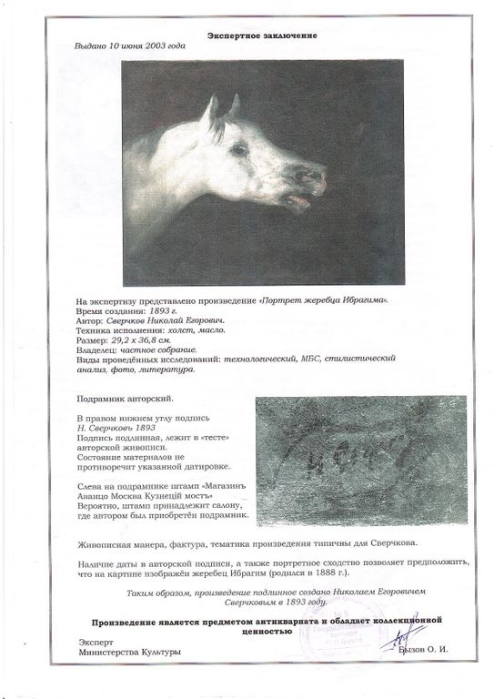 На картину имеетс экспертное заключение ЕМИИ.