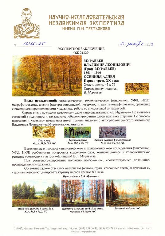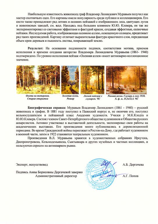 Муравьев Владимир Леонидович (1861–1940) Осенняя аллея. Первая треть ХХв. Холст, масло 45Х76 (1228)