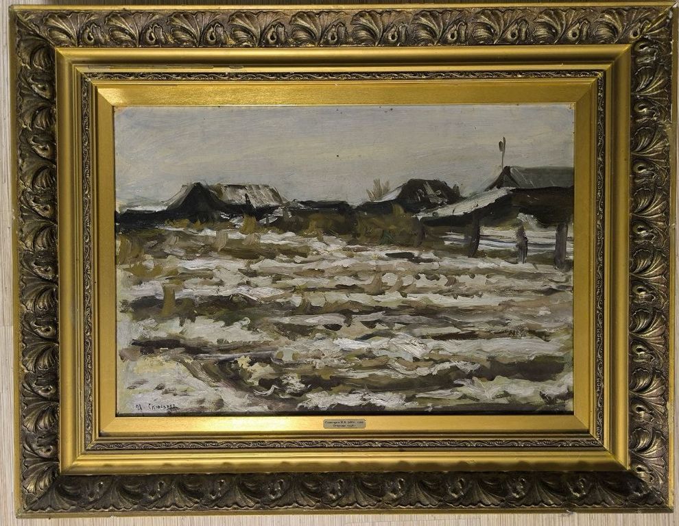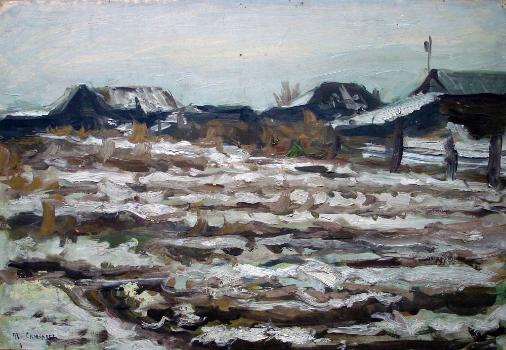 Слюсарев И.К. Огороды 1936 г. Картон, масло 44Х64 (265/13)