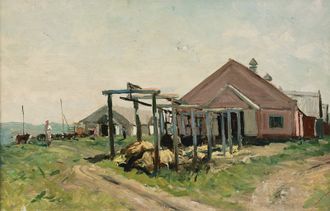 Каюков Н.С. Ферма 1958г картон, масло. 29Х45 (167)
