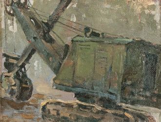Нестеров И.Н. Этюд к картине "Строительство ж/д Ивдель Обь" 1960-е гг. картон, масло. 23Х30 (110)