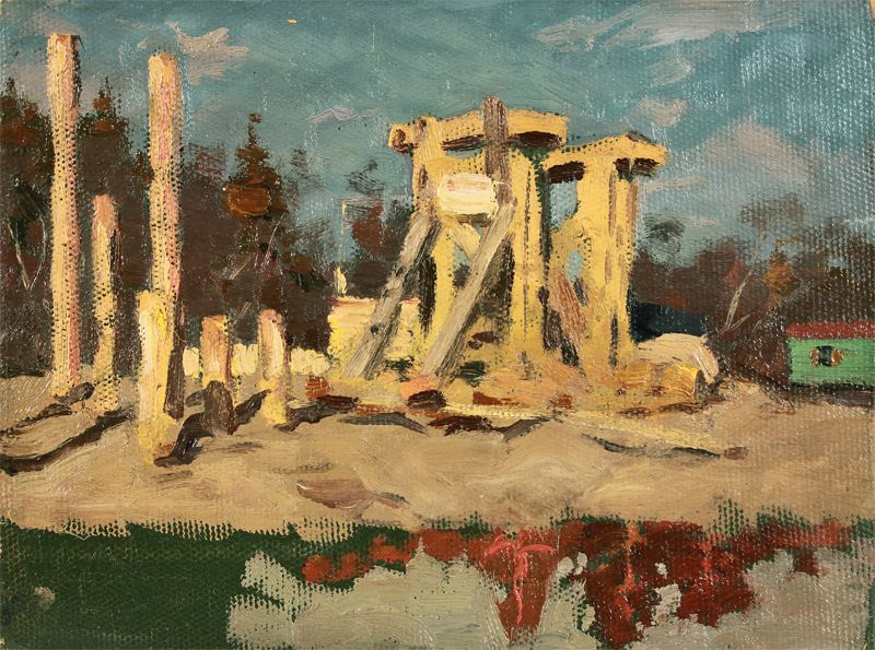 Нестеров И.Н. Строительство моста 1960-е гг. картон, масло 23Х30 (115)
