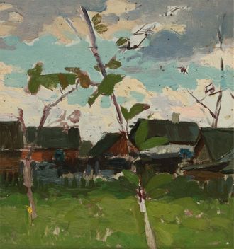 Нестеров И.Н. Уральская деревушка 1950-е гг. картон, масло 25Х23 (116)