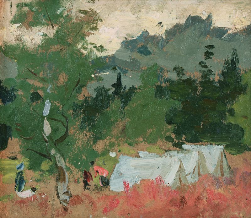 Нестеров И.Н. У Таганая 1958г картон, масло 22Х25 (120)