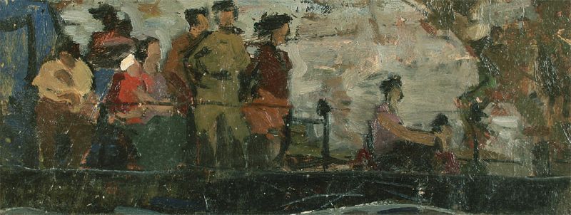 Нестеров И.Н. Эксиз к картине "На новостройки Вишеры" 1963г. картон, масло 14,5Х36,5 (126)