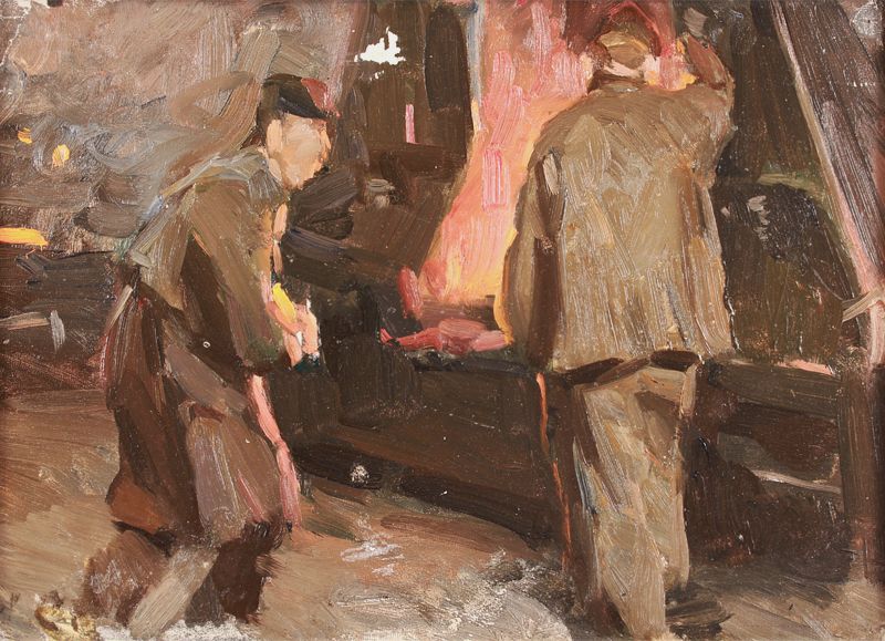 Симонов И.И. Этюд. У молота 1957г. картон, масло 24Х35 (133)