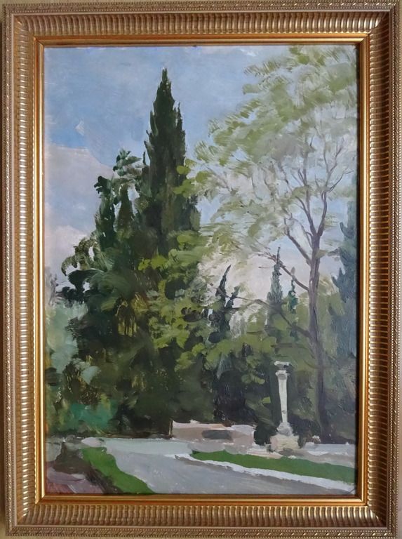 Бернгард О.Э. Кипарисы 1959г. Картон, масло 48,5Х34,5 (688)