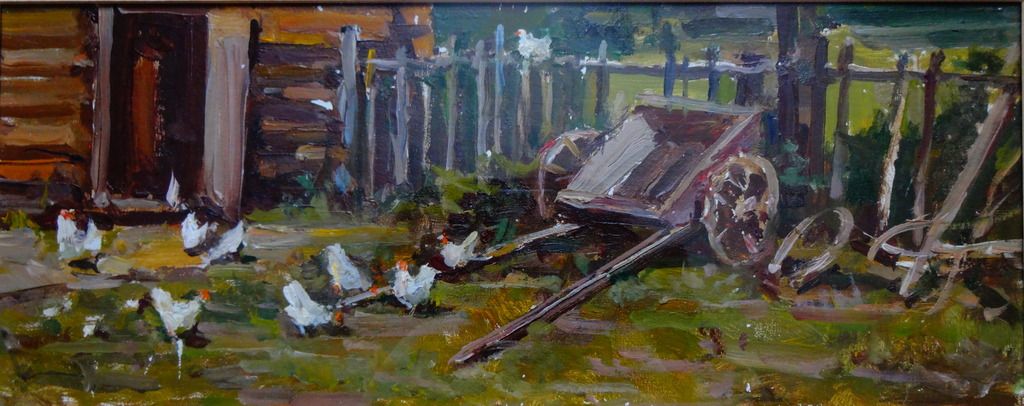 Бернгард О.Э. Деревенский двор 1960-е гг. Картон, масло 17Х42 (690)