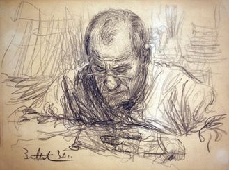 Зинов В.С. За чтением 1936г. Бумага, карандаш 20,5Х27,5 (534)